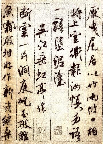 米芾(1051年—1107年),自署姓名米或为芈,初名黻[fú],后改为芾。北宋书法家、画家,宋四家之一。曾任校书郎、书画博士、礼部员外郎。祖籍山西,然迁居湖北襄阳,后曾定居润州(今江苏镇江)。书画自成一家,枯木竹石,山水画独具风格特点。在书法也颇有造诣,擅篆、隶、楷、行、草等书体,长于临摹古人书法,达到乱真程度。