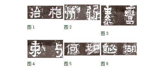 正方形结体。在该碑中有很多左右结构的字呈正方形状,如图一“治”、“枪”等字,形同四角饱满的块状,没有成熟楷书的中宫紧收、四周纵放的体态,显得端整、结实。