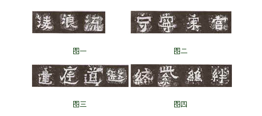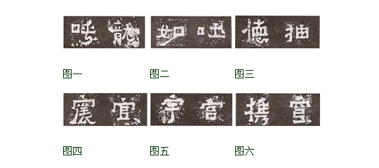 圆折保留了古体篆书的笔法,使字体古朴。《爨宝子碑》中的圆折在整体方正古茂的面貌下,方中寓圆,阴阳相生,增加了神秘感和力量感。如图一“呼”的竖钩,“龙”的竖弯钩,中锋行笔,缓慢推进,写得圆浑遒劲。