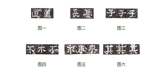 《爨宝子碑》在整体方正统一的格调中,同字异构者很多,充分展现了其“一纸字字意殊”的艺术特色。如图一中“道”字,第一个“道”结构舒展宽博,‘首”部的横写得长而劲挺,“辶”和“首”部之间空间较大,字态显得雍容、安详;第二个“道”中“辶”借用行书,写得流畅自然,和“首”部之间空间较狭,紧凑生动。