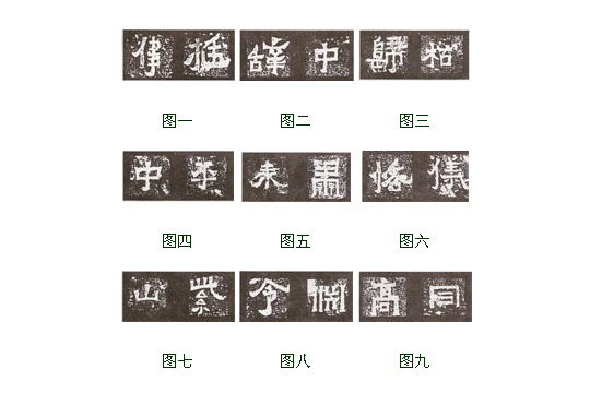 (5)《爨宝子碑》中凡楷书取竖钩笔势的,在这里都作竖直笔画处理,如图九“高”、“同”等字的竖钩,都是竖画方笔收势。这是一般隶书中常见的笔法。这一笔法的应用充分说明《爨宝子碑》亦楷亦隶的书法风格,显示出其方正古茂的艺术特点。