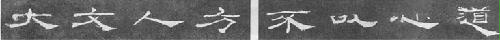 捺的写法在《礼器碑》中一般都用笔较重,是字的主要笔画。如图二“不”、“以”、“心”、“道”字的捺,均浑厚雄沉。下笔时让笔锋吸饮墨汁,力贯笔尖,由轻至重。当笔锋到位时,提出来笔上挑,顺势捺出。《礼器碑》中,往往由于这一捺画的突出安排,使整个字平中寓奇,奇而稳健。